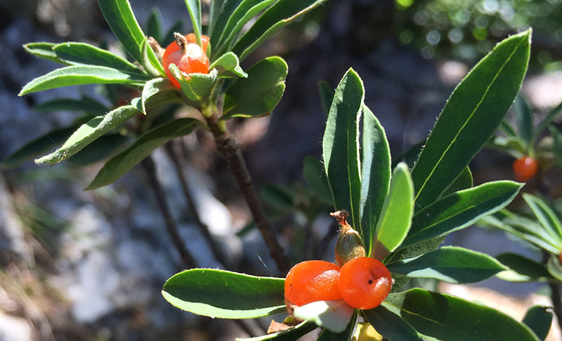 Vom Treffpunkt beim Schloss Oensingen steigen wir hinauf zur Bränte, wo wir die ersten Arten der primär Wald freien Felsvegetation mit Blaugrashalden (Sesleria caerulea) antreffen werden: Daphne alpina, Coronilla vaginata, Thlaspi montana, Teucrium montanum, T. chamasedrys, Iberis saxatilis, Rosa spinosissima.