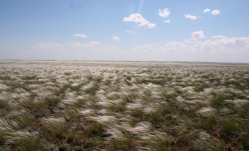 Massenaspekt von Stipa lessingiana Anfang Juni in der Trockensteppe Nordkasachstans. Foto Norbert Hölzel